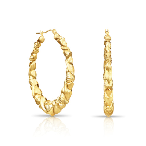 10k Yellow Gold Diamond-Cut Engraved Hoop Earrings