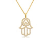 14K Solid Yellow Gold CZ Hamsa Pendant