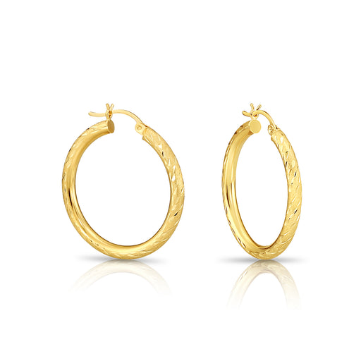 14k Yellow Gold Diamond-Cut Round Flat Hoop Earrings