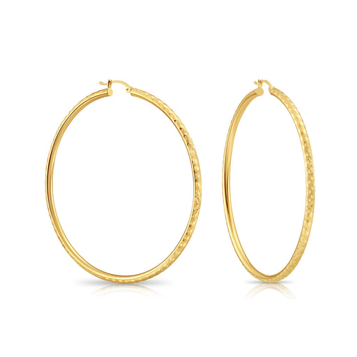 14K Gold Tornado Style Diamond Cut Hoop Earring, Flat Bar