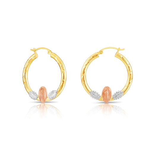 14k Tri Color Gold Hoop with Guadeloupe and Diamond Cut, Flat Bar