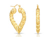 14K Gold Heart Shaped Bamboo Hoop Earrings