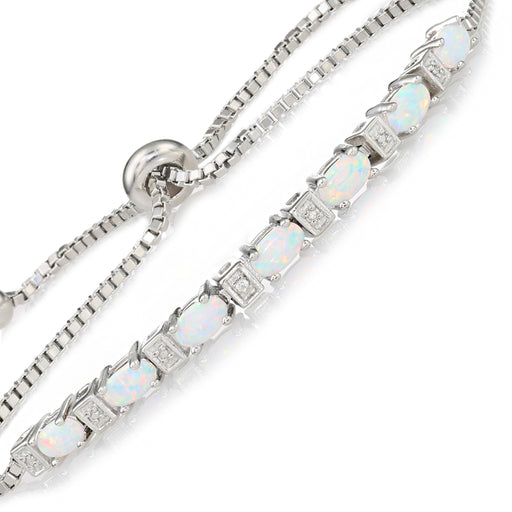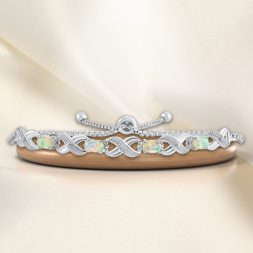 925 Sterling Silver Fire Opal with Round CZ Adjustable Bracelet