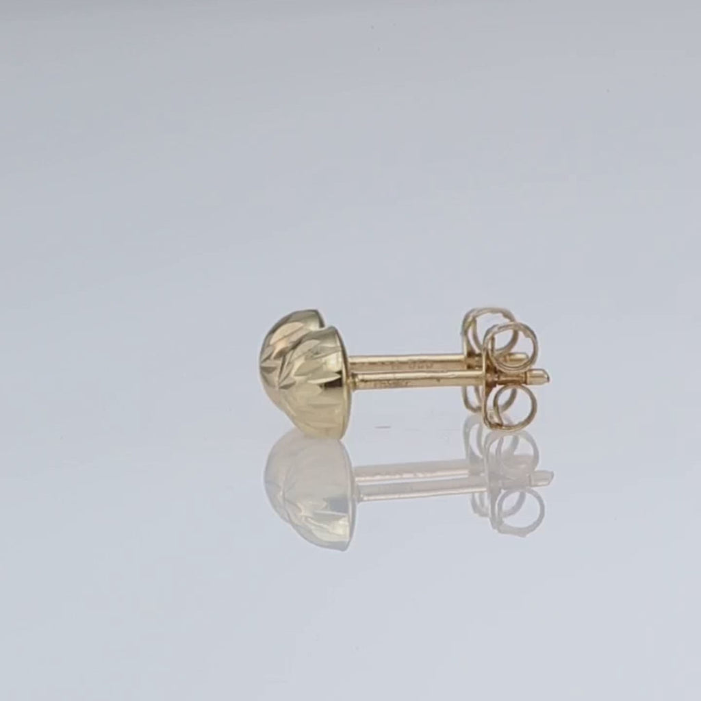 14K Solid Gold Fancy Diamond-cut Half Ball Earrings - Pushback
