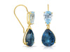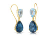 14K Yellow Gold 26 CTTW London Blue and Sky Blue Topaz Pear Shape Dangle Drop Earrings