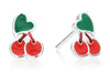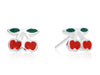 925 Sterling Silver Enamel Cherry Push Back Studs