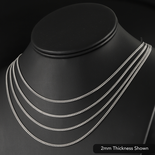 Login to view pricesSKU: SSCUBAN Metal: Sterling Silver Thickness: 2.0 mm - 5.0 mm Necklace Size: 16" - 26" Bracelet Size: 7" - 8" & 1" Adjustable Plating: Rhodi...