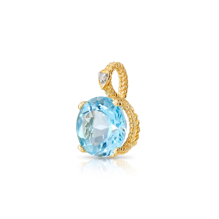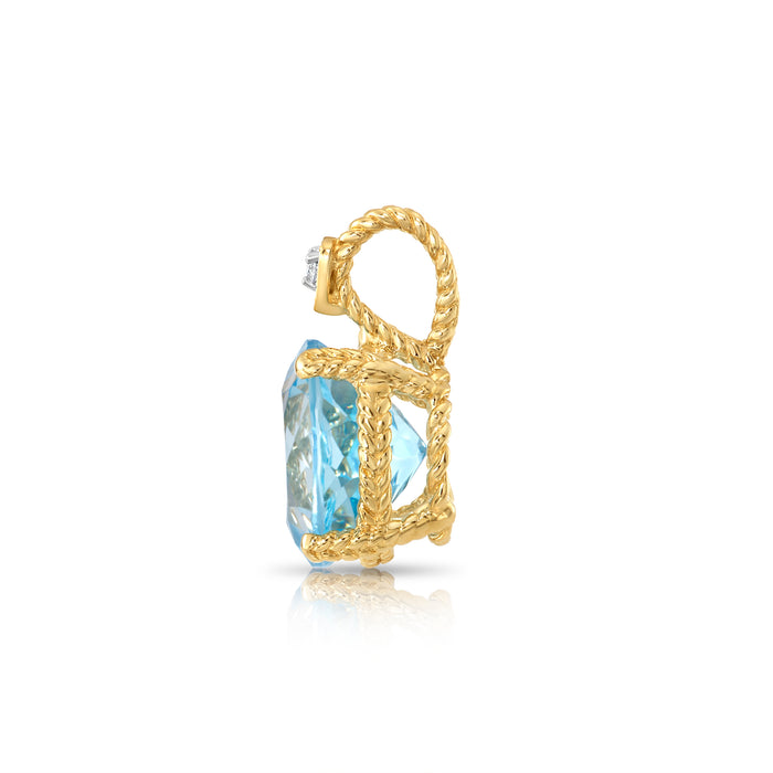 14K Yellow Gold Sky Blue Topaz Gemstone and Diamond Rope Accent Pendant