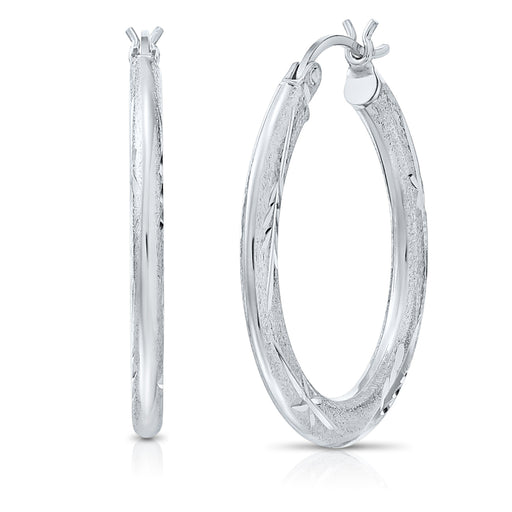 925 Sterling Silver Satin Finish Diamond Cut Hoops
