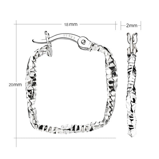 Login to view pricesSquare Twist Hoops in Sterling Silver Metal: Sterling Silver Material Purity: .925 Plating: Rhodium Plated Diameter: 20mm