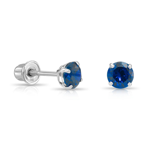 14k Solid White Gold Round Birthstone CZ Stud Earrings - SCREWBACK - 4MM