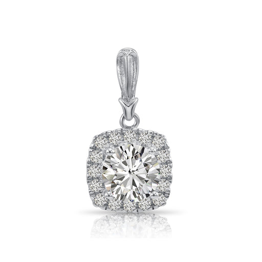 925 Sterling Silver Cushion Halo with Round Center Stone Pendant Necklace