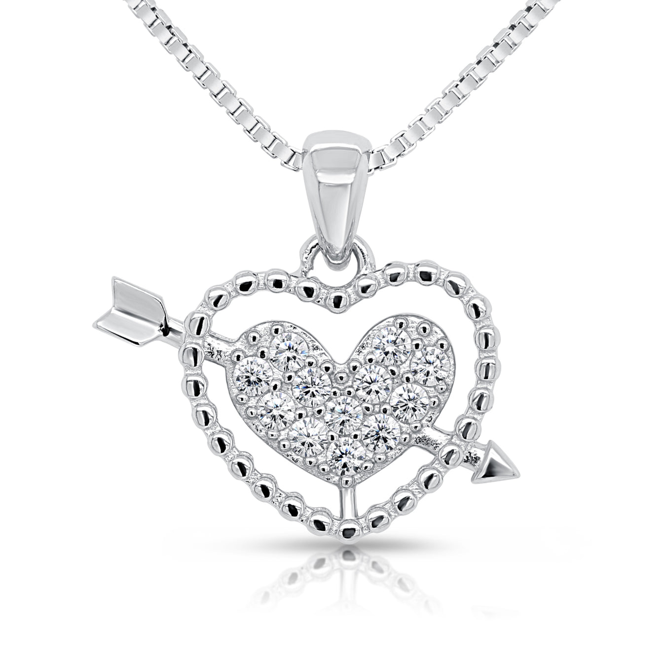 Metal: Sterling Silver Material Purity: 925 Plating: Rhodium Plated Stone: Cubic Zirconia Pendant Size: 22mm"(H) x 13mm"(W) Made in the USA