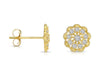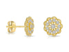 14k Yellow Gold Milgrain Flower Cluster Lab Diamonds Stud Earrings - Push Backs