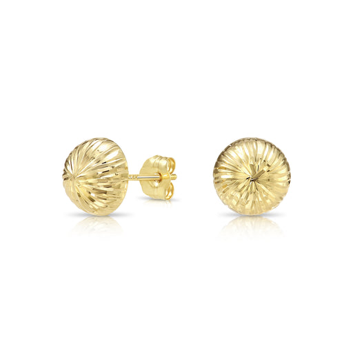 14K Solid Gold Fancy Diamond-cut Half Ball Earrings - Pushback