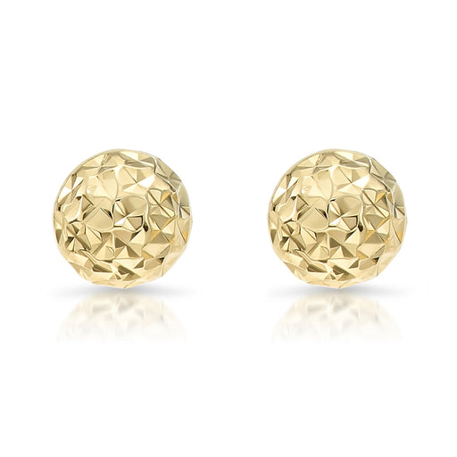 14K Solid Gold Fancy Diamond-cut Ball Earrings - Pushback-FDCB-YG