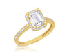 14K Yellow Gold Halo Emerald Cut Cubic Zirconia Engagement Ring