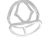 Sterling Silver Double Band Crossover Open Ring Two-linked Cz Bracket ring