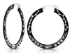 925 Sterling Silver Black Rhodium Floral Design Engraved Hoop Earrings