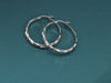 925 Sterling Silver Diamond Cut X Pattern Round Hoops