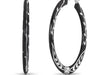 Sterling Silver Black Hoop Earrings with Floral Diamond Cuts, Flat Body