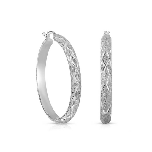 925 Sterling Silver X Diamond-cut Hoop Earrings - 30 mm (1.2 Inch)