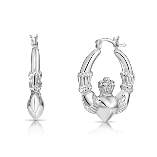 925 Sterling Silver Heart & Crown Claddagh Hoops