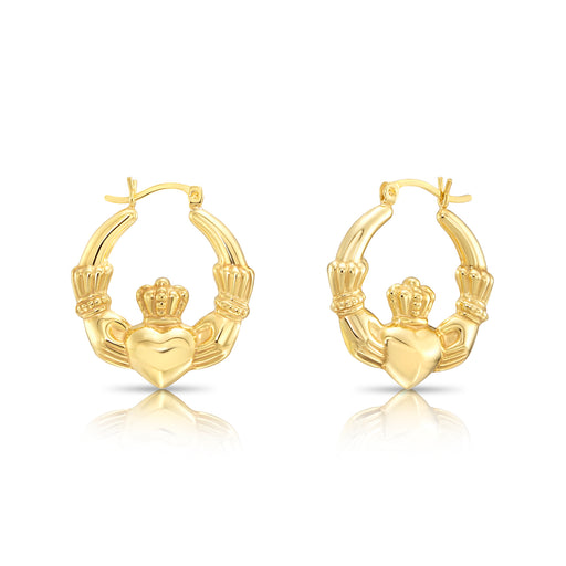 925 Sterling Silver Heart & Crown Claddagh Gold Tone Hoops