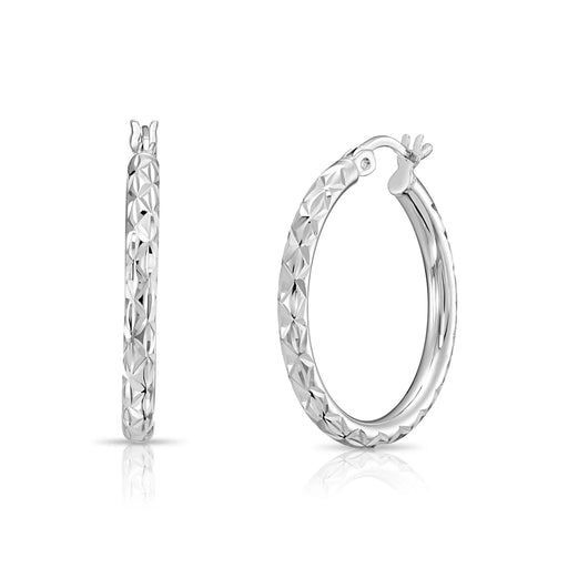 925 Sterling Silver X Diamond-cut Hoop Earrings - 25 mm (1 Inch)