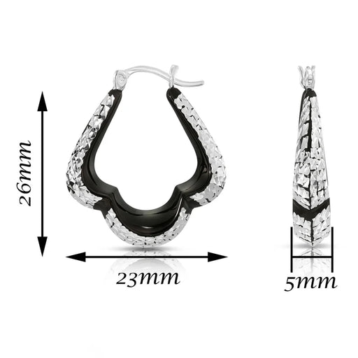 Fancy Glossy Black Sterling Silver Three-Point Hoop Earrings