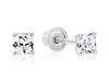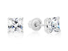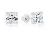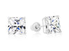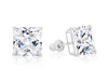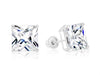14k White Gold Square CZ Stud Earrings - Screwback