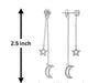 925 Sterling Silver Moon and Stars CZ Dangle Drop Stud Earrings