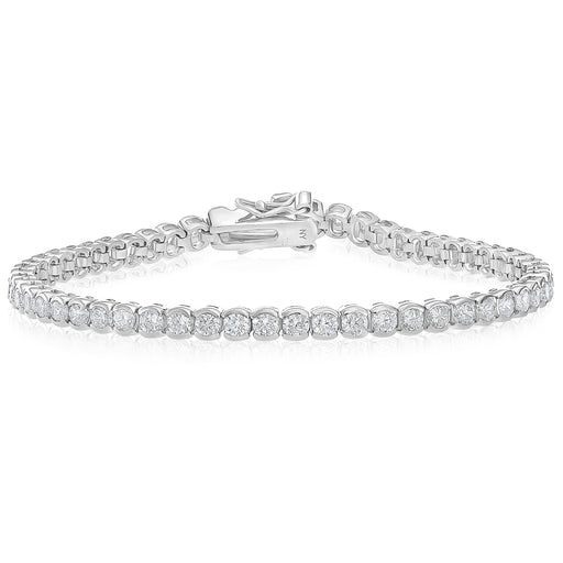 925 Sterling Silver Half Bezel Round CZ Tennis Bracelet