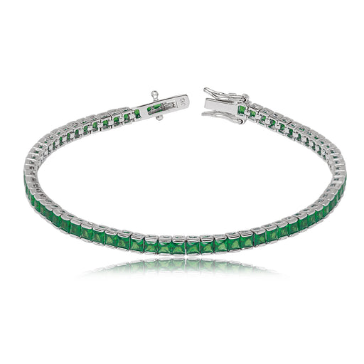 925 Sterling Silver Princess-Cut Channel Set CZ Emerald Tennis Bracelet