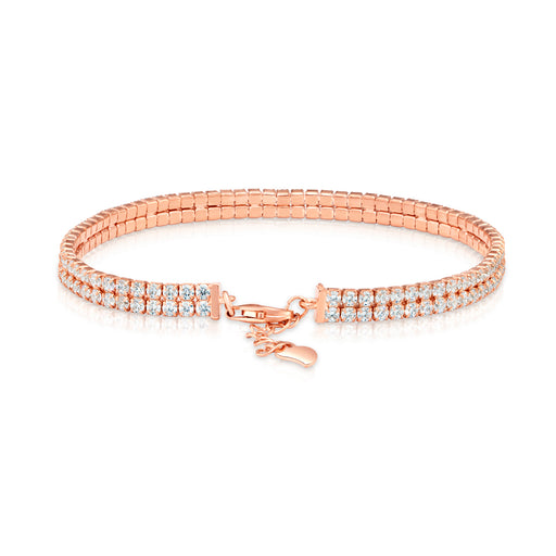 925 Solid Sterling Silver Rose Tone Classic Tennis Bracelet