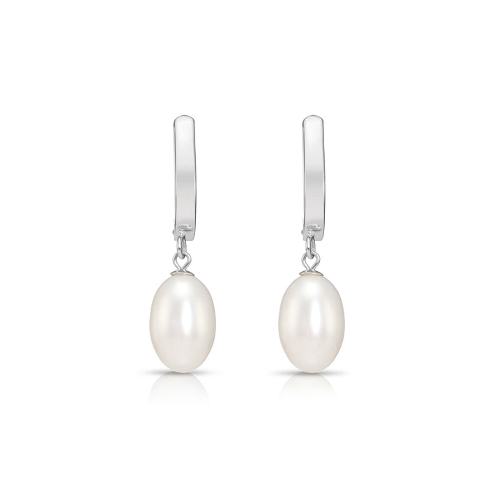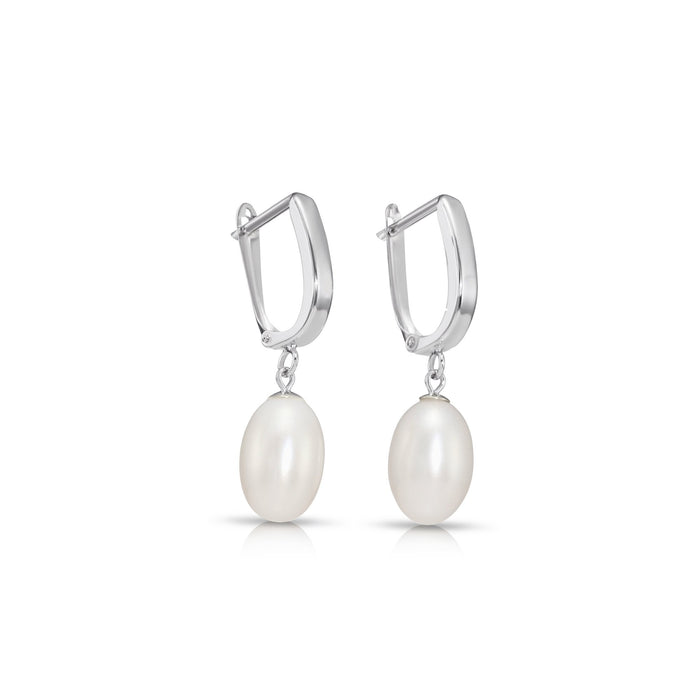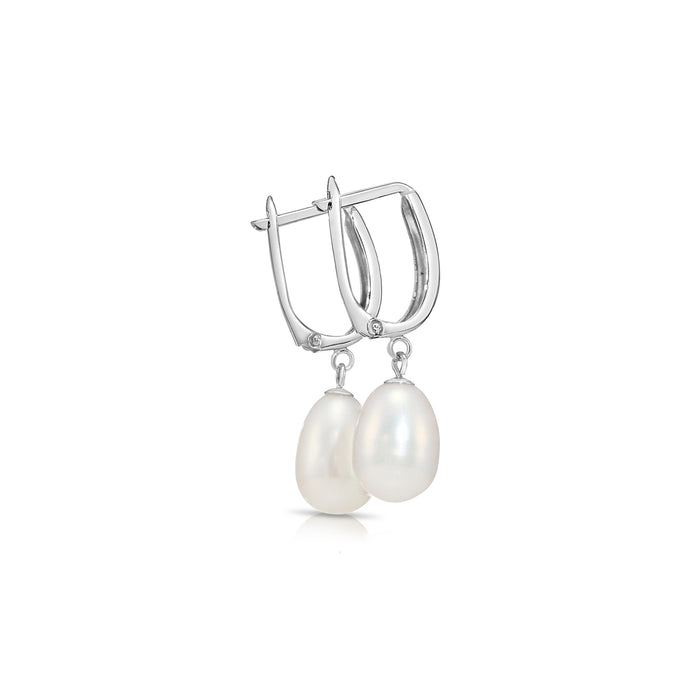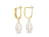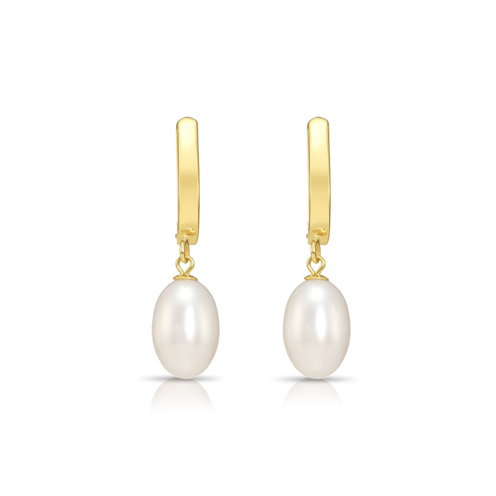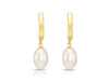 14K Gold Classic Dangle Drop Freshwater Pearl Huggie Earrings