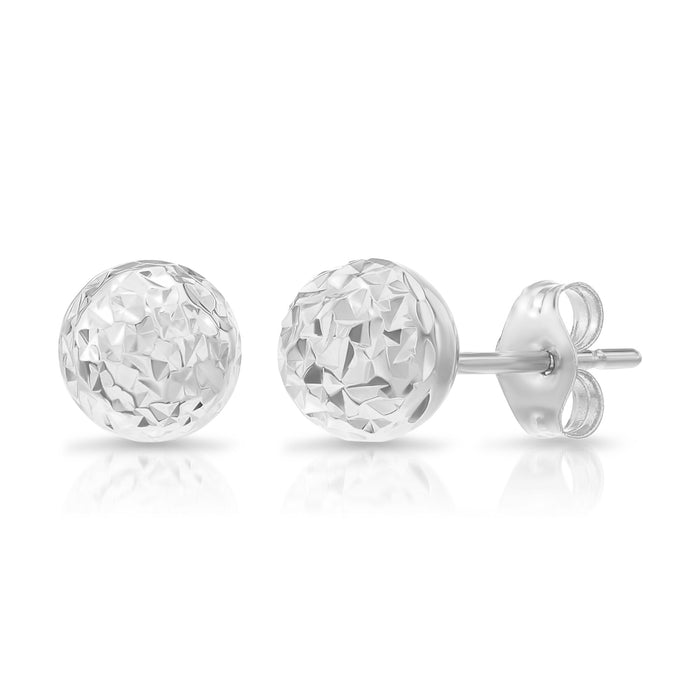14K White Gold Diamond-Cut Pushback Ball Stud Earrings