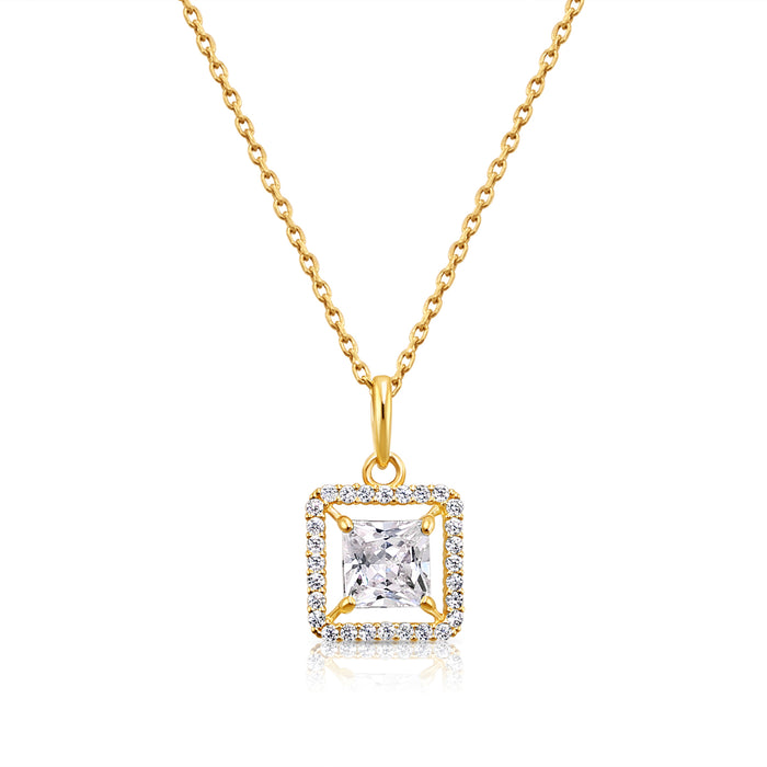 14K Yellow Gold Princess-Cut Halo CZ Pendant
